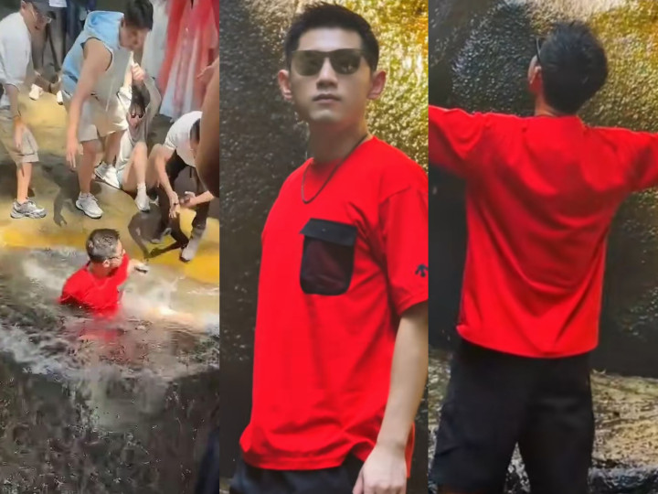 张继科并未受伤,只是湿了衣服,在身边人的帮助下,上岸,看起来并无大碍。