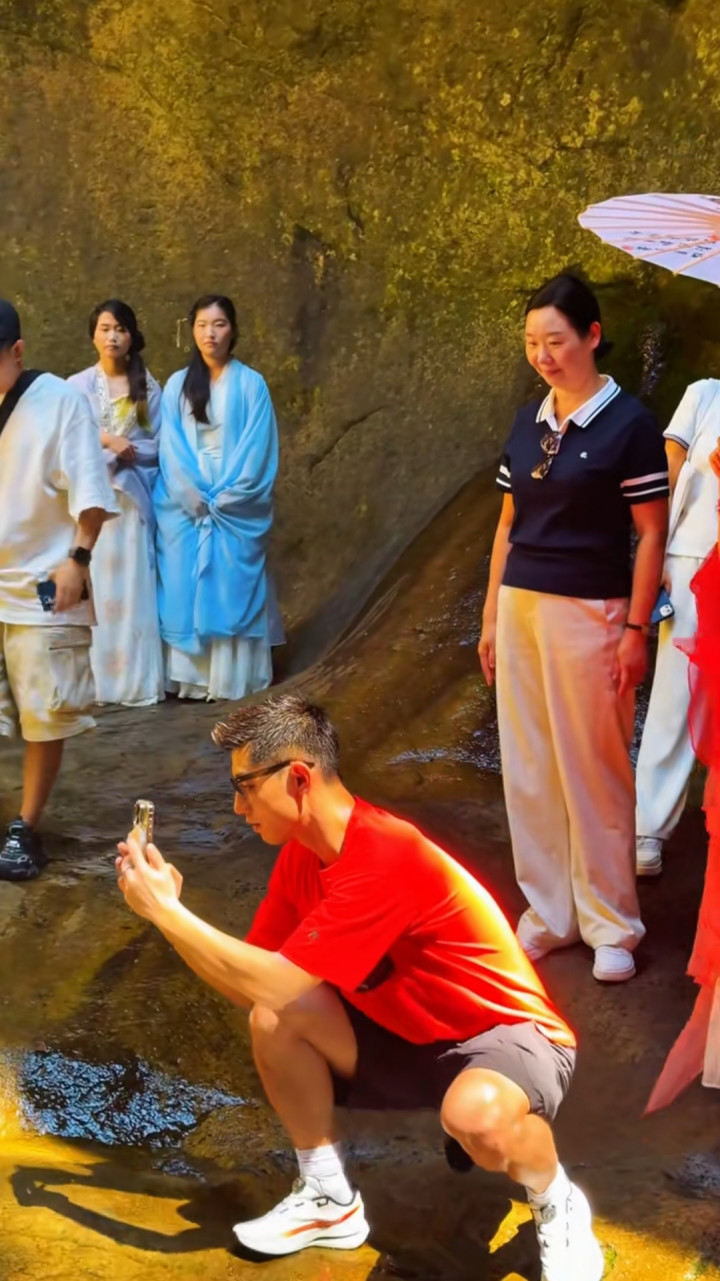 2025年10月2日,张继科在福建省福安市白云山风景名胜区的九龙洞附近游玩。瀑布金山格外好看,张继科一边游玩,一边拍照,格外惬意。